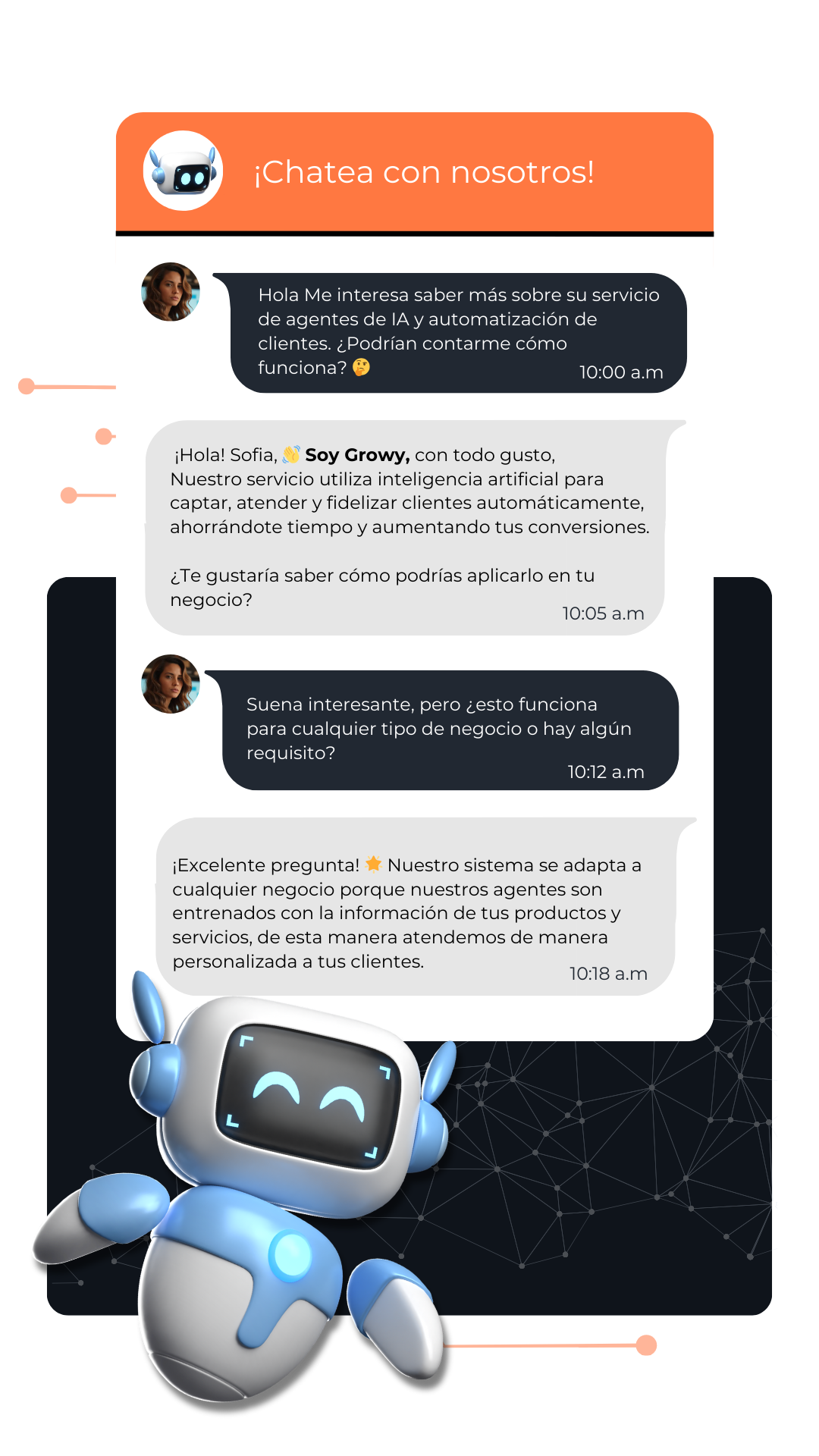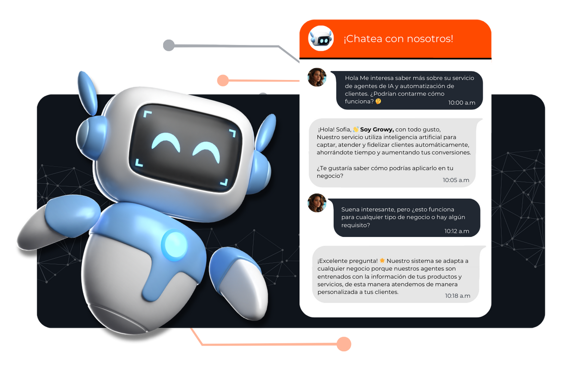Deja que tu Agente de Inteligencia Artificial se encargue de tus clientes mientras tú haces crecer el negocio.